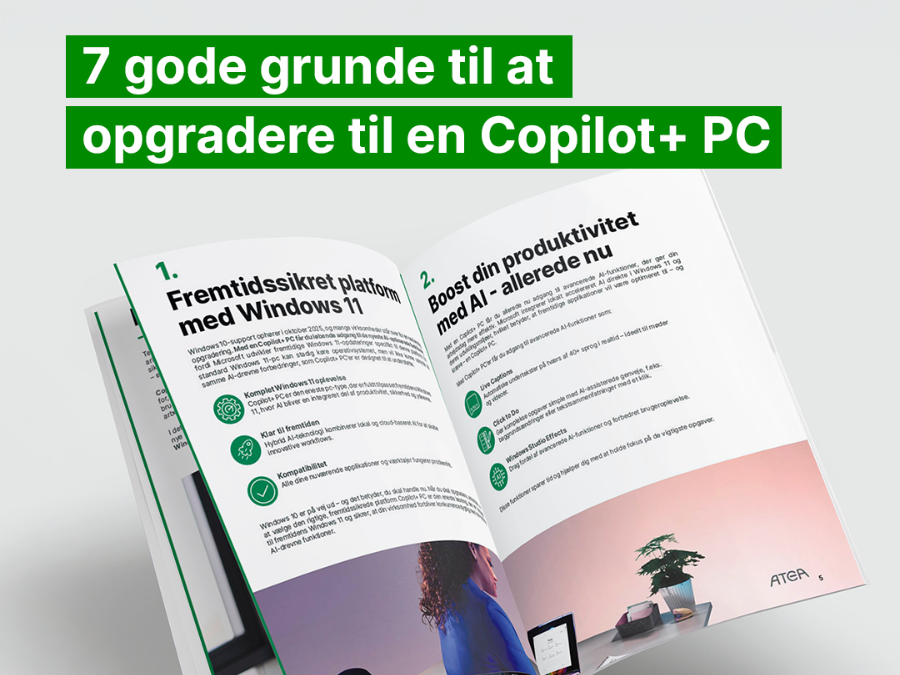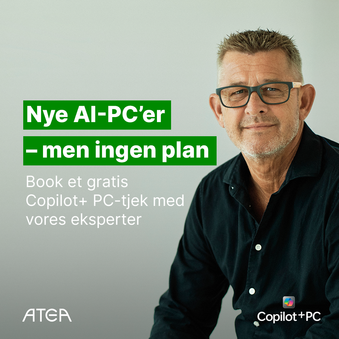 Overvejer I at opgradere til Copilot+ PC? Med en gratis assessment fra Atea får I et klart overblik over jeres it-infrastruktur og hvordan den understøtter – eller begrænser – brugen af Copilot+ PC.