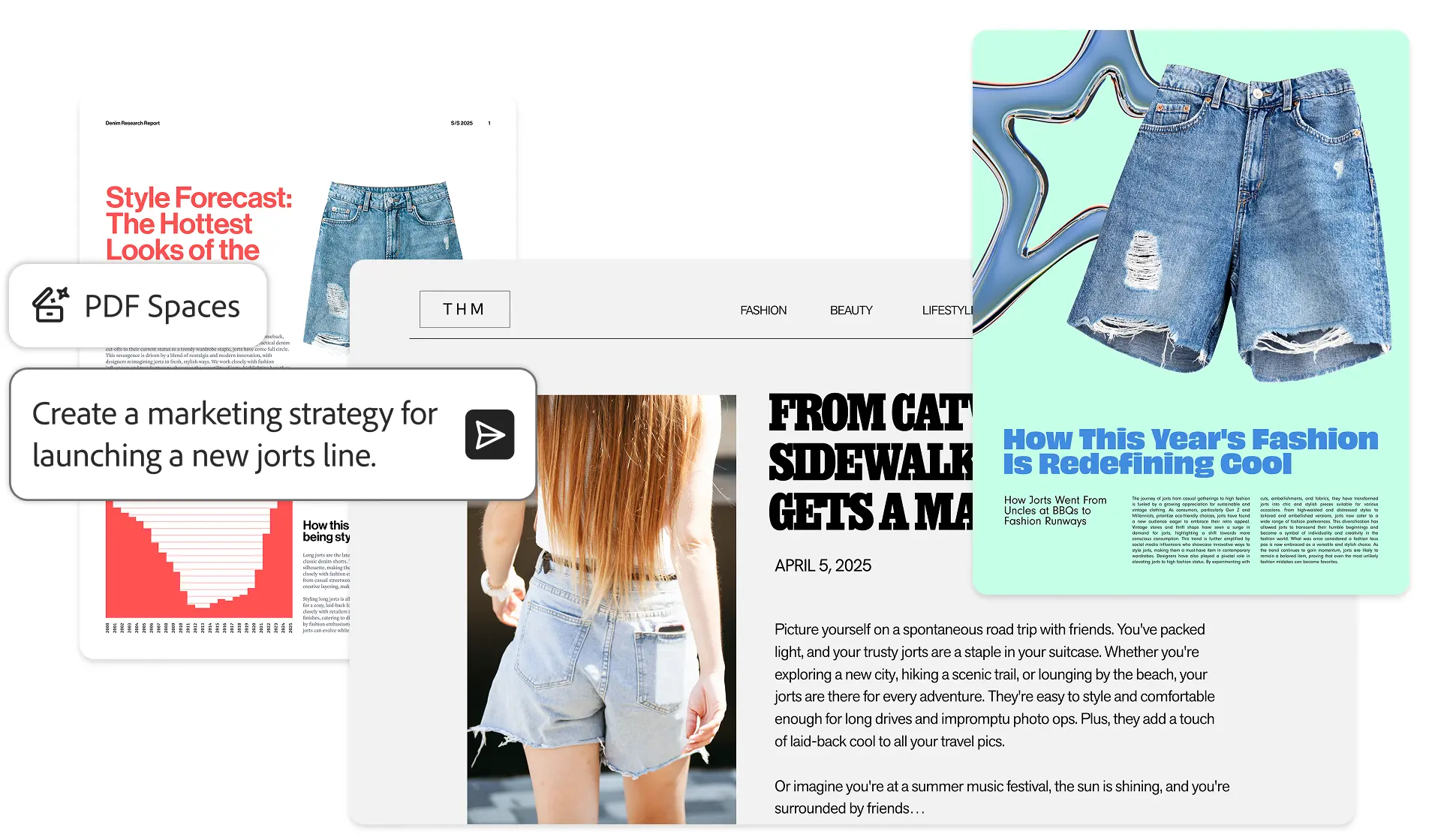 Ud over de kraftfulde dokument- og kreative værktøjer giver Adobe Acrobat Studio dig også adgang til det nye og spændende PDF Spaces. PDF Spaces samler alt materiale i et centralt, søgbart hub, der bruger AI til at identificere indsigter, give intelligent assistance og dele skræddersyede AI-agenter – så du kan samarbejde problemfrit og fremskynde arbejdsgange.