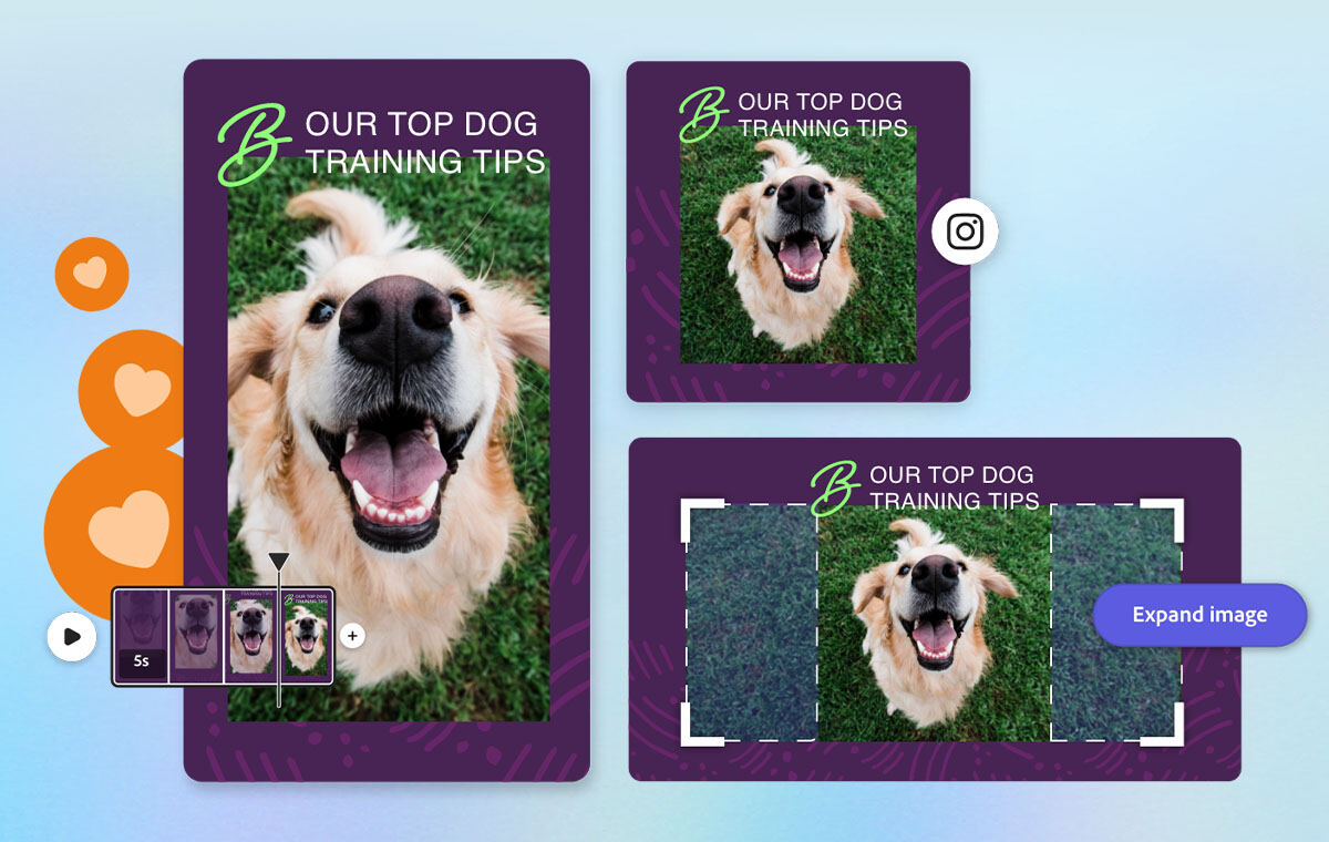 Uanset om du arbejder med kampagner, intern information eller sociale medier, giver Adobe Express dig mulighed for hurtigt at producere visuelt indhold med høj kvalitet.