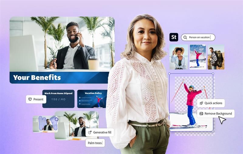 Skab grafik og video hurtigt med skabeloner og AI i Adobe Express. Ideelt til marketing, HR og intern kommunikation – uden designerfaring.