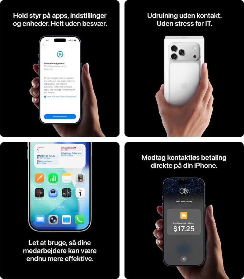 eSIM: Brug af eSIM kræver en udbyder, der understøtter eSIM og et mobildataabonnement. Kontakt din udbyder for at få mere at vide. Du kan læse mere på apple.com/dk/esim.