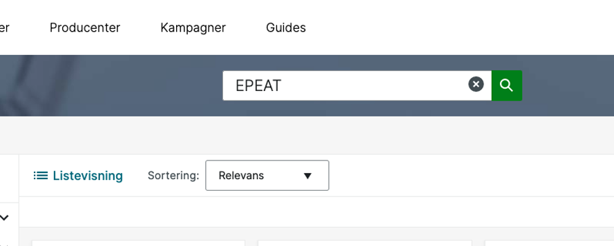 Indtast et nøgleord for en af standarderne såsom TCO, EPEAT eller Energy Star i søgefeltet.