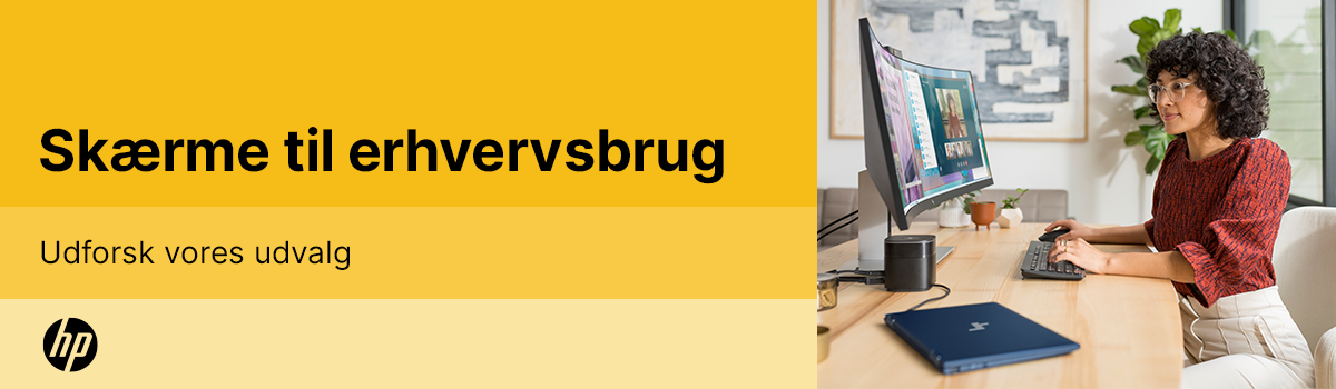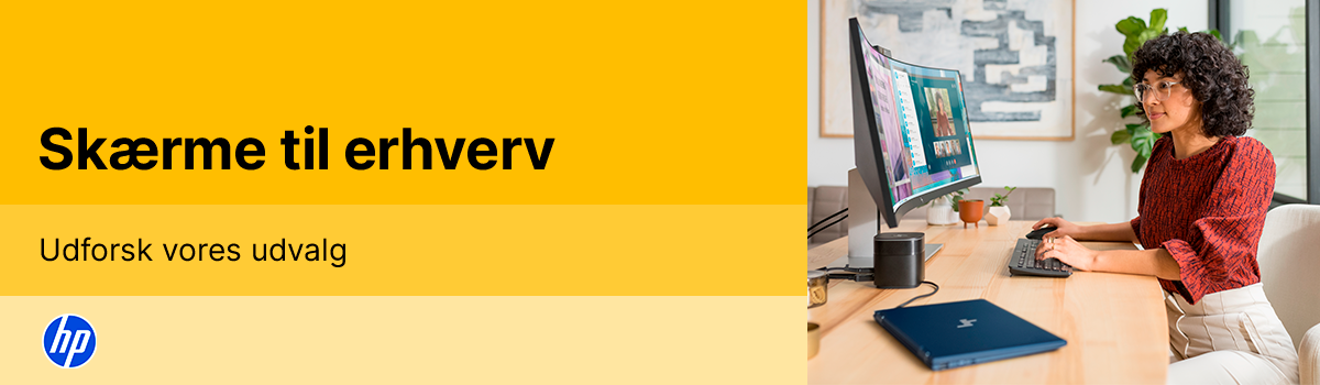Med en HP-skærm kan du være sikker på, at du får en holdbar løsning i et flot design, der er skræddersyet til dine unikke arbejdsopgaver. Det er nemt at tilslutte din HP-computer til skærmene, så du kan arbejde effektivt på flere skærme ad gangen.