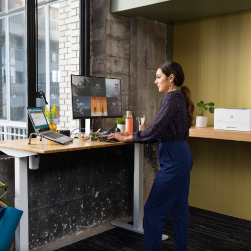 Det er ikke ligegyldigt, hvordan din arbejdsstation ser ud. Et ergonomisk og professionelt setup er med til at skabe struktur og arbejdsglæde hos den enkelte medarbejder, ligesom en flot og præsentabel arbejdsstation med kvalitetsudstyr øger kvaliteten af arbejdet. Derudover er arbejdsstationer noget af det første, som udefrakommende ser, når de træder ind på kontoret. Sørg derfor for at give dem et godt førstehåndsindtryk af virksomheden og investér i HP udstyr, der udstråler kvalitet og professionalisme. Så hæver du både den visuelle stil og det professionelle udtryk i virksomheden, samtidig med at du øger kvaliteten af dine medarbejderes arbejde og resultater.