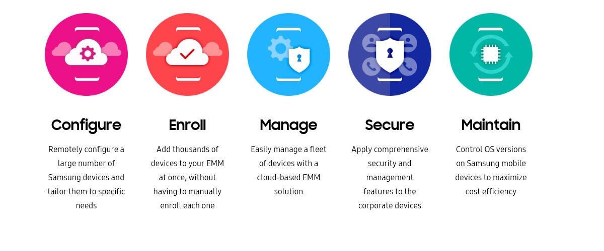 - Samsung Knox Configure (KC) giver dig skræddersyede løsninger, der matcher dit behov perfekt. Alle har forskellige behov, og du kan fjerkonfigurere dine Samsung-enheder og tilpasse dem dine egne specifikke behov.