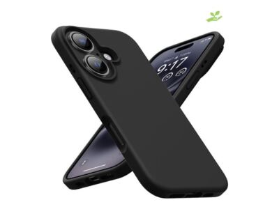 Hello - Bagsidecover til mobiltelefon - gummieret - sort - for Apple iPhone 16