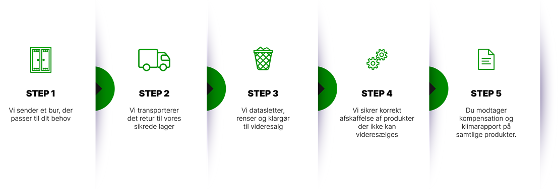 Tag dine kollegaer under armen, og sammen få en oplevelse med vores bæredygtighedseksperter, hvor I lærer mere om, hvordan I nemt kan implementere en bæredygtig og rentabel it-returneringsordning, der lever op til de højeste NATO-godkendte standarder for datasletning og compliance.