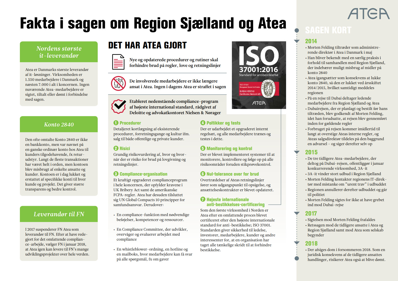 Atea har udarbejdet en samlet redegørelse for de tekniske, organisatoriske og personalemæssige foranstaltninger i Atea A/S med henblik på at forebygge uberettigede økonomiske dispositioner i forhold til indgåelse og gennemførelse af aftaler med det offentlige. Har du spørgsmål til redegørelsen, er du velkommen til at kontakte os.