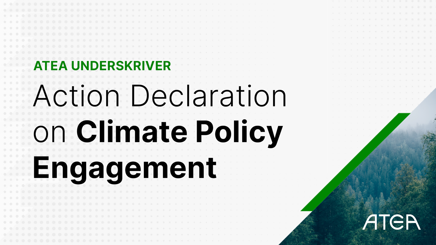 Atea er kåret som verdens mest bæredygtige virksomhed inden for it-tjenester, ifølge Global 100-indeksmålingen udgivet af det canadiske medie- og analysefirma, Corporate Knights. Atea er fortsat i front, hvilket underskriften på initiativet Action Declaration on Climate Policy Engagement bekræfter. Atea er medunderskriver sammen med over 50 globale virksomheder, der tilsammen har en omsætning på over 900 milliarder dollars, det vil sige næsten én procent af hele verdens samlede BNP.