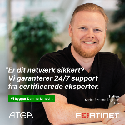 Når vi siger, at "Vi bygger Danmark med it," mener vi det. I tæt samarbejde med Fortinet leverer Atea it-sikkerhedsløsninger, der beskytter enheder og data overalt – fra mindre virksomhedsmiljøer til stor kritisk infrastruktur. Vores partnerskab betyder, at vi sammen kan beskytte din virksomhed og gøre Danmark stærkere og mere sikkert i en omskiftelig digital verden fyldt med udfordringer.